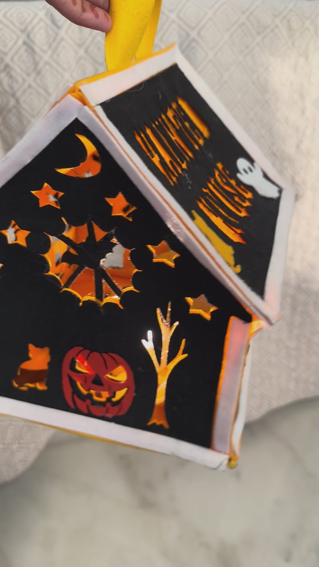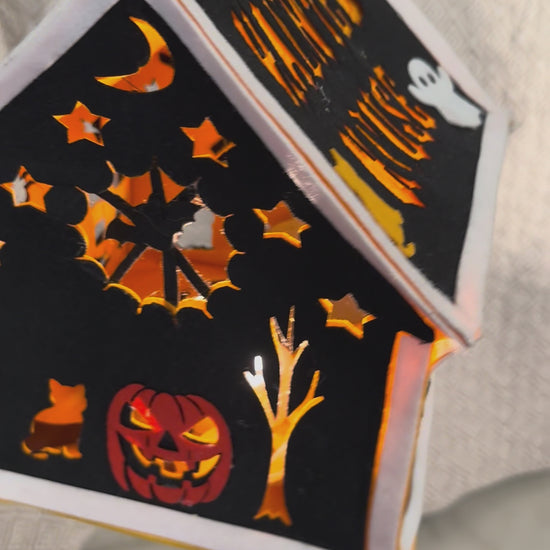 Handmade Haunted House Felt Lamp – Pretend Play & Halloween Sensory Set with spooky characters